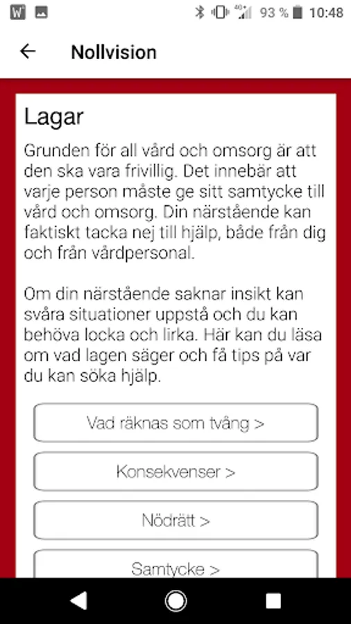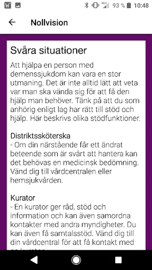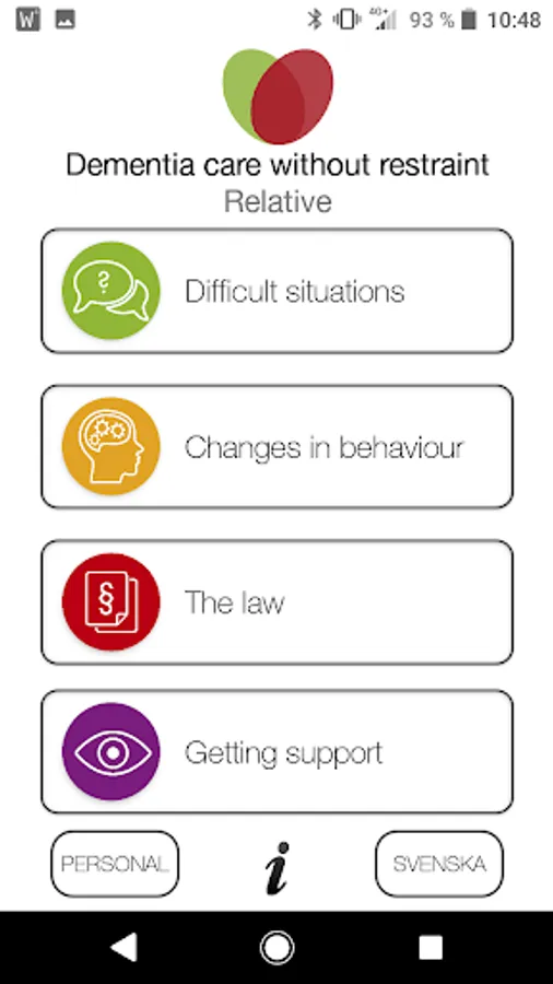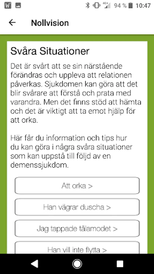 This app is part of an information teaching package/course; Zerovision - for dementia care without restraint. A brochure for family and friends is also a part of the education package. There is also a manual, an app and web based course specifically for nursing staff.