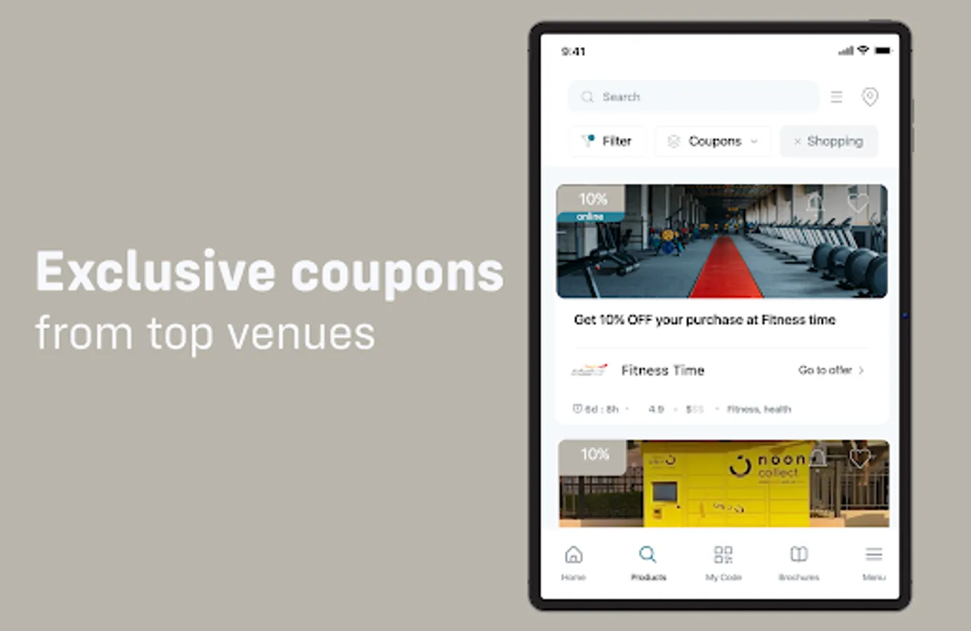 Get the best price for selected goods and services by purchasing in-app coupons from famous brands!