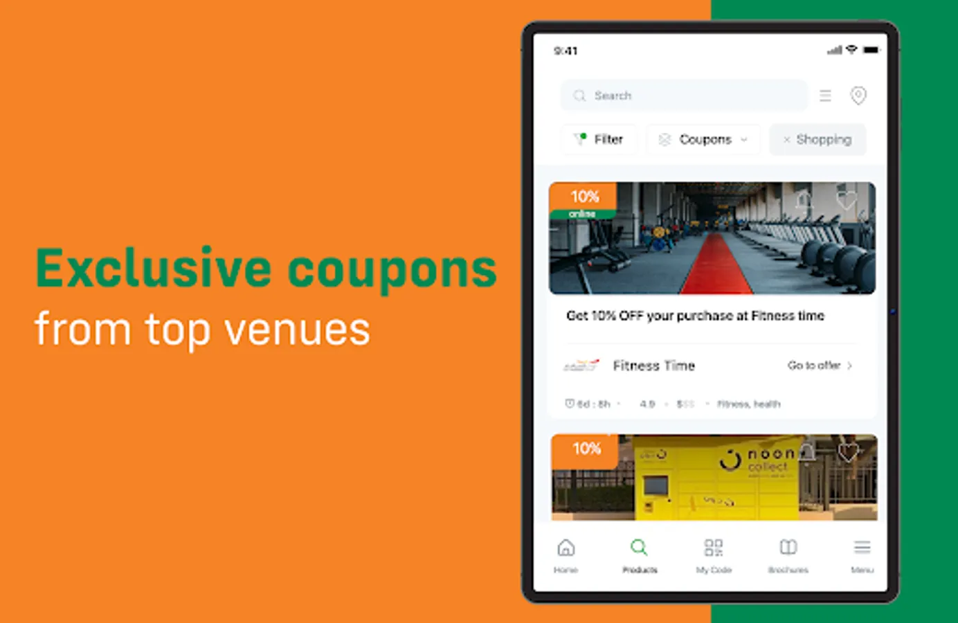 Get the best price for selected goods and services by purchasing in-app coupons from famous brands!
