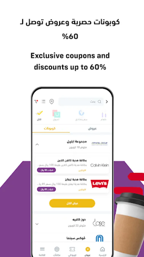Get discount codes from the most famous local and international brands and electronic applications.