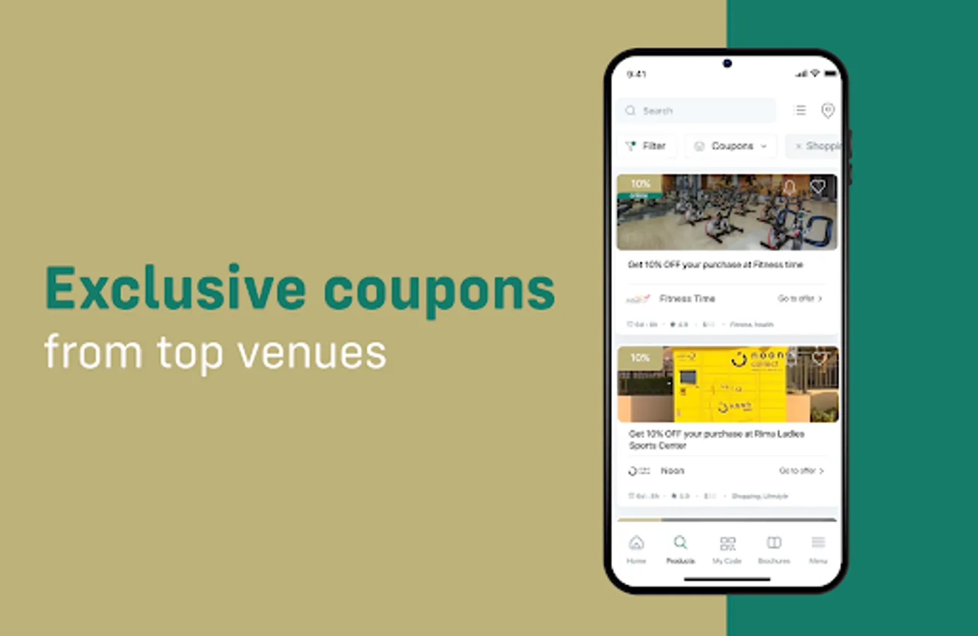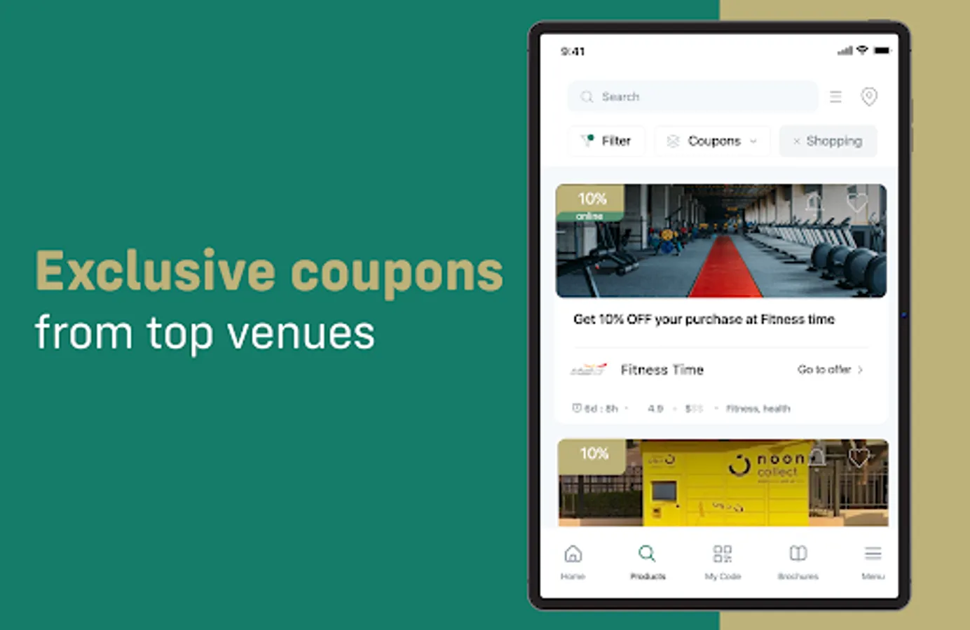 Get the best price for selected goods and services by purchasing in-app coupons from famous brands!
