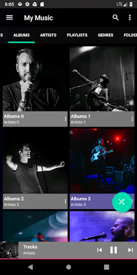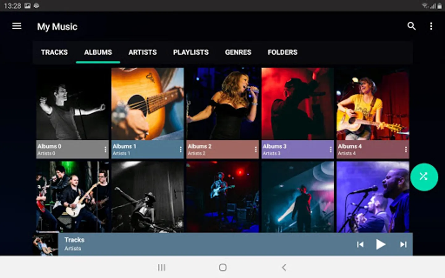 ✔ If you can't see album art, please patience scroll to end of album page, then scroll back, it's will work ok. Reason: the app try to optimize memory use for image, but it's not work in some of device.