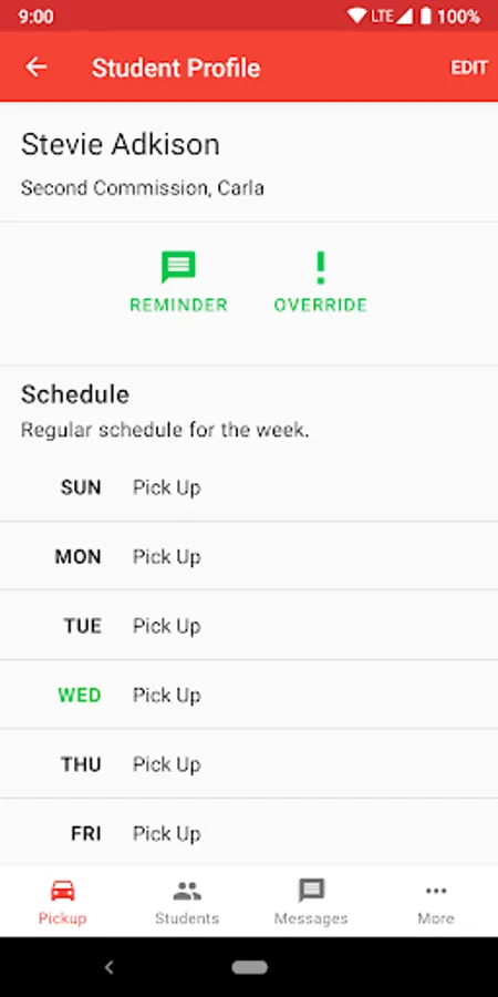 May update student requirements for dismissal for the current day by designate student as absent; having left early; as specifically participating in carpool; specifically participating in a single after school group such as school bus, daycare van, club, tutoring, after care, or something else; or being picked up by an alternate carpool when going home with a friend. [when allowed by school settings]