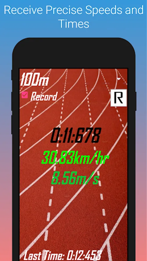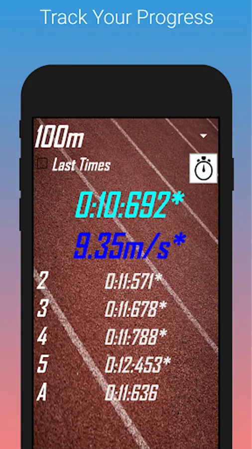 Now easily track your speed on your phone 📱. When you are running let your phone seamlessly track your time 🕒 and speed 💨 during your track workouts. Or grab a friend to help time your runs 🏃 during your track workouts.