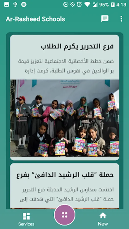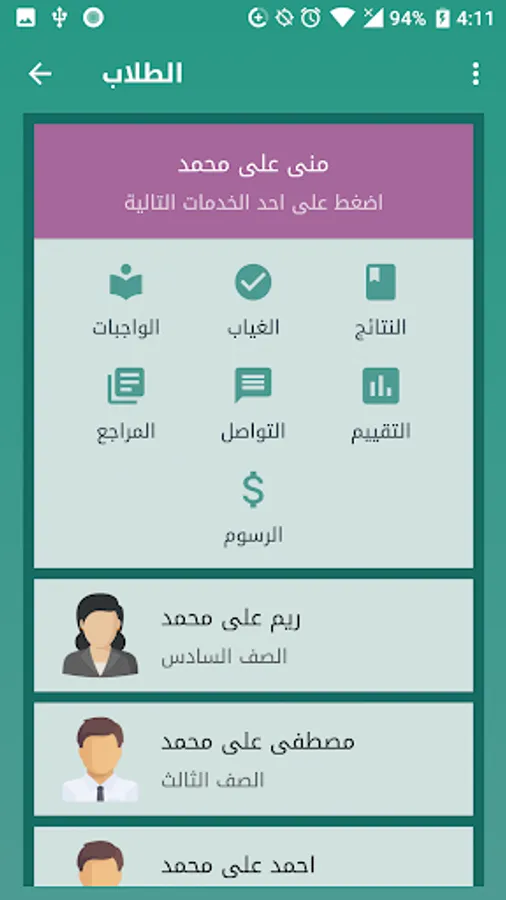 The application displays school news, and provides a review of grades, fees, and absence for student parents.