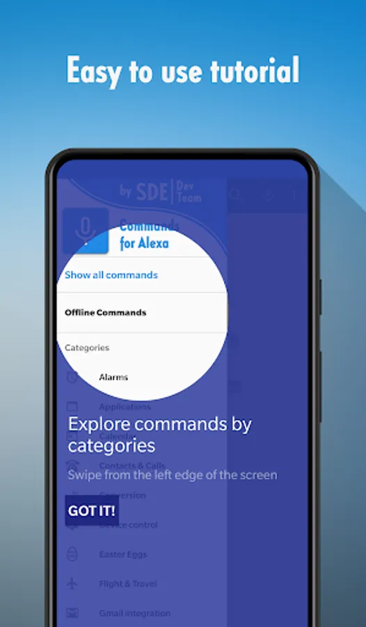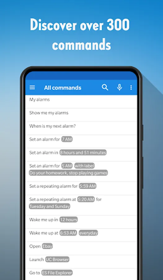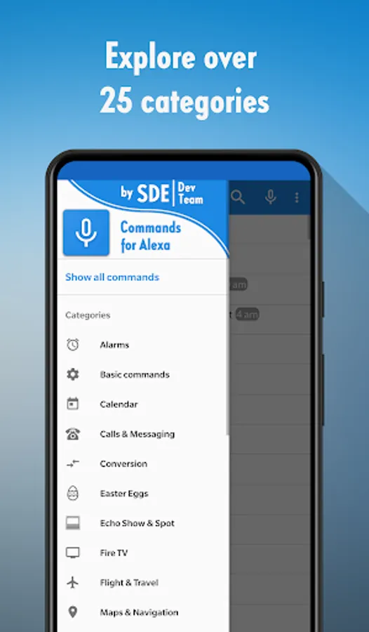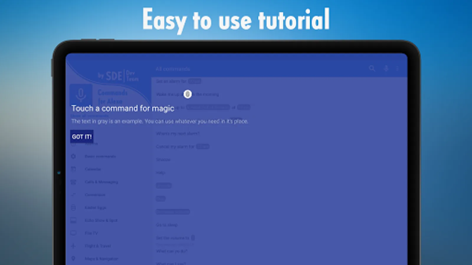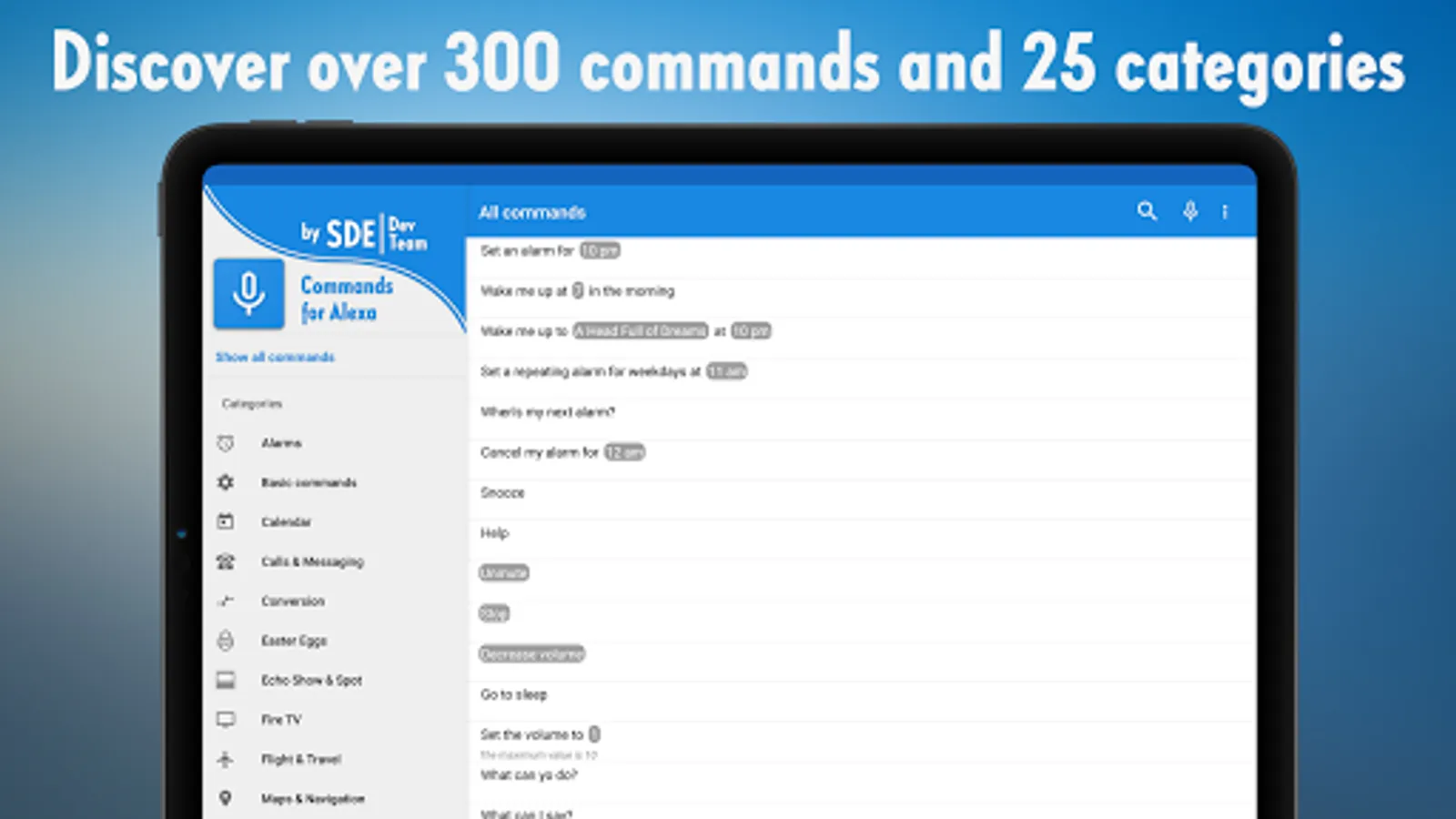 Discover commands, see possible examples, understand the usage of over 300 hands-free actions (commands) you can say to Amazon Alexa Assistant in your phone or Echo speaker and find them in just a few taps! Everything you may ask your phone to do, from Search and Navigation, to Messaging and fantastic Easter Eggs are presented to you in the most intuitive and beautiful way in this full Alexa Voice Commands guide.