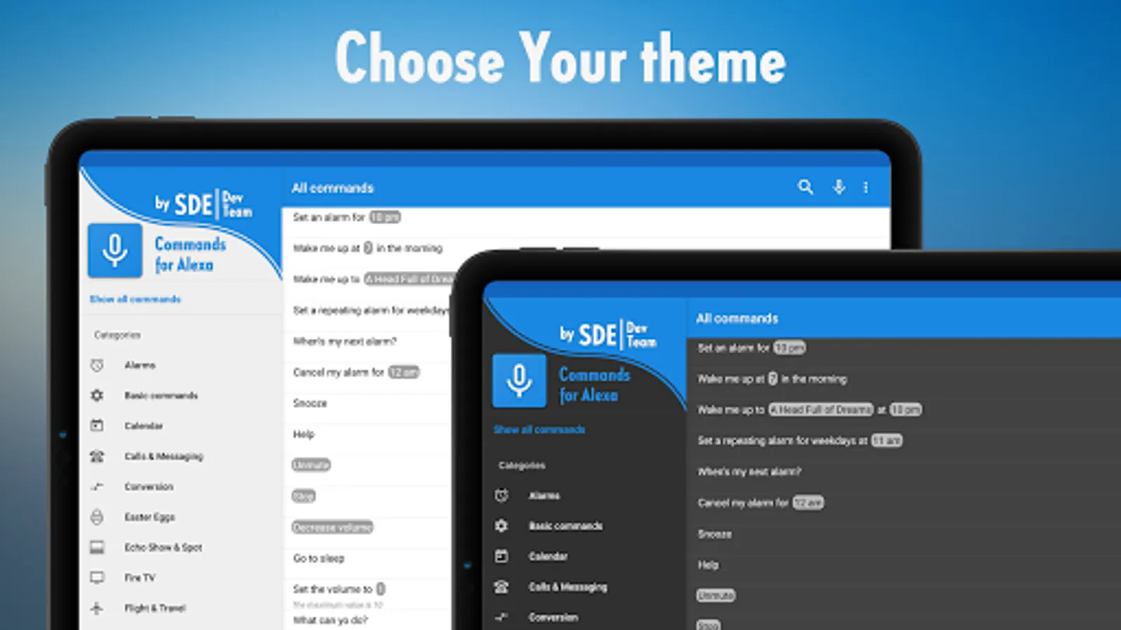 Discover all Alexa voice commands for voice control, say Alexa and do things by just commanding with your voice! Find Amazon Alexa Assistant commands and phrases in this easy to understand guide and try them right away! All voice commands are divided in catergories! Everything you can say to to your phone or personal Amazon Echo speaker is presented to you as a guide of about 25 categories of useful and powerful Amazon Alexa voice actions and commands. By saying Alexa, you can control your phone or any other device, with help of Alexa Asisstant (this app is not Amazon Alexa Assistant itself!). We also offer you to place a widget which will start Amazon Alexa on tap.