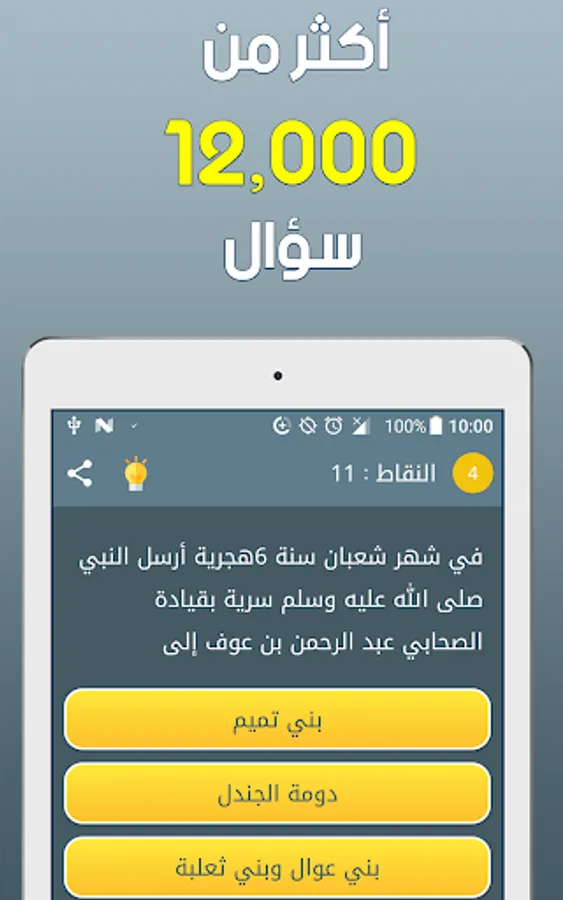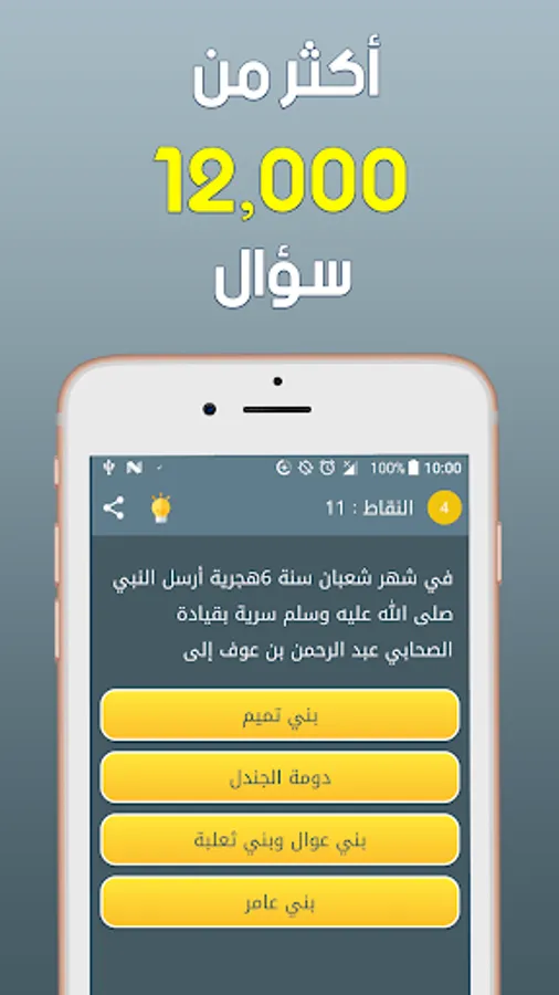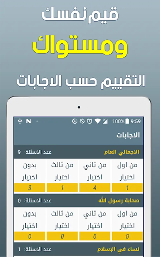 Islamic competition includes more than 12,000 questions about Islam where he deals with Biography of the Prophet and the Companions of the Messenger of Allah and the women of Islam and also the invasions of Islamic conquests, leaders and martyrs and also in Islamic history and jurisprudence scholars and Islamic books and caliphs, princes and Islamic countries in the numbers and figures relating to Islam and Muslims and other Islamic landmarks.