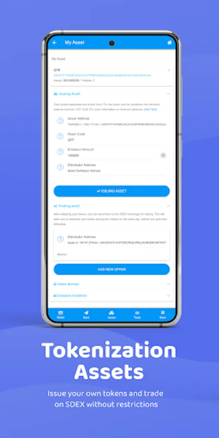 Scopuly allows you to make payments worldwide in any digital currency, trade digital assets on SDEX, issue tokens and manage your Stellar account.