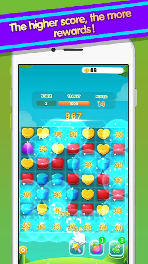 1. Eliminate the jelly by connecting three or more matching items. You can connect as many similar items as possible with just one touch and swipe. The more jelly bursts in a single row, the more you enjoy! ! !