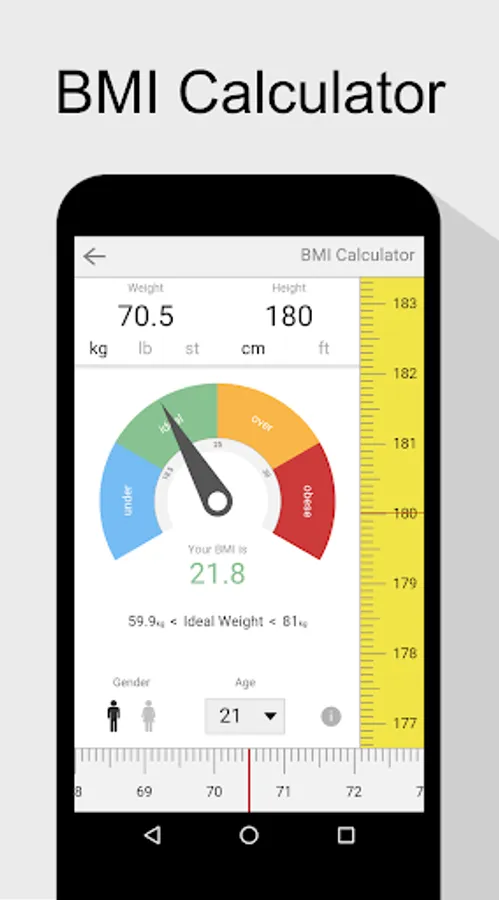 EasyBMI - BMI Calculator calculate your BMI, ideal weight & monitor your weight, is a free application and easy to use. Keep those pounds in check the fun way! Thanks to our 3in1 solution, it has never been so easy and FUN to lose weight!