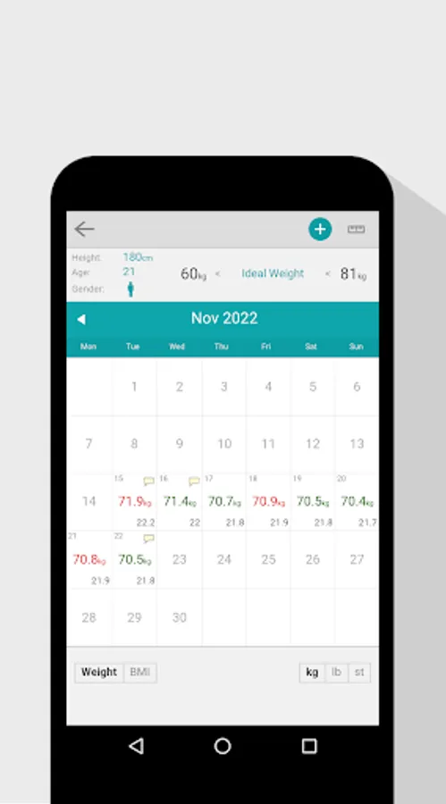 Our app gives you the much needed support and nudge in the right direction. Day by day, monitor your weight.