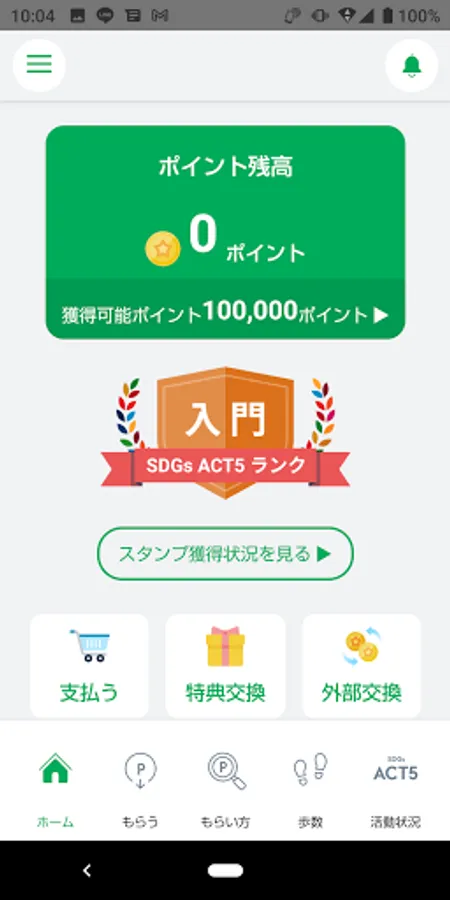 The ACT5 member point app is an app that allows all participants to get points by participating in SDGs activities, support products and services that contribute to SDGs by using the accumulated points, and enliven SDGs activities with all participants. is.