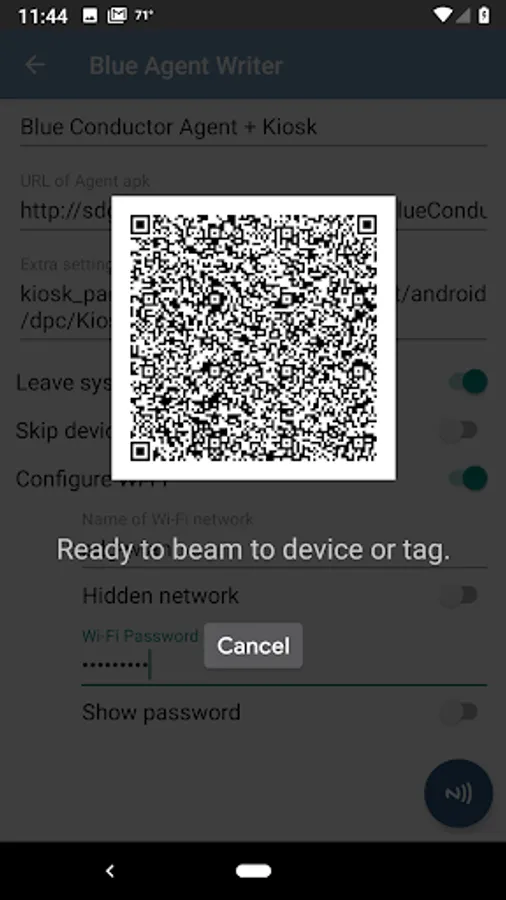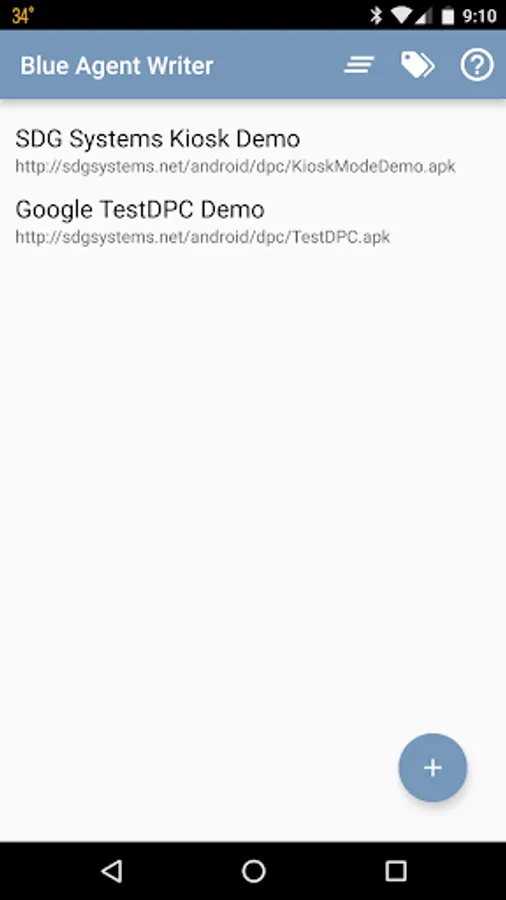 Device Agent Writer allows you to provision a new Android 5+ device with a device owner app or device policy controller (DPC). You can use the NFC device bump method, write the information to NFC tags (ones that have sufficient storage), or use QR code provisioning.