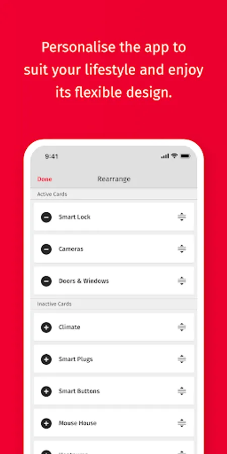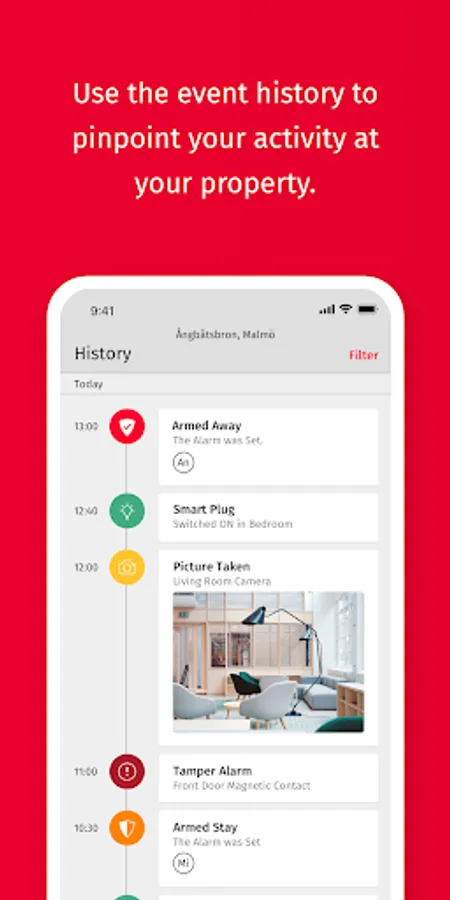 Take control of your alarm status. Smart notifications provide an overview when family members return home and move the alarm status between armed and disarmed.