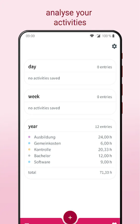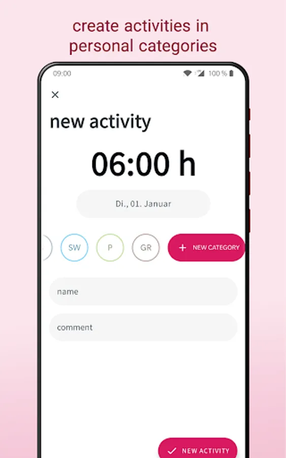 Create individual categories. Whether sports units, projects, assignments or school subjects. You can save your activities and assign them to the categories.
