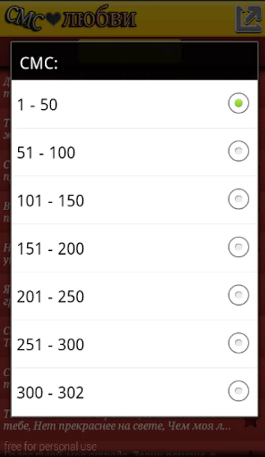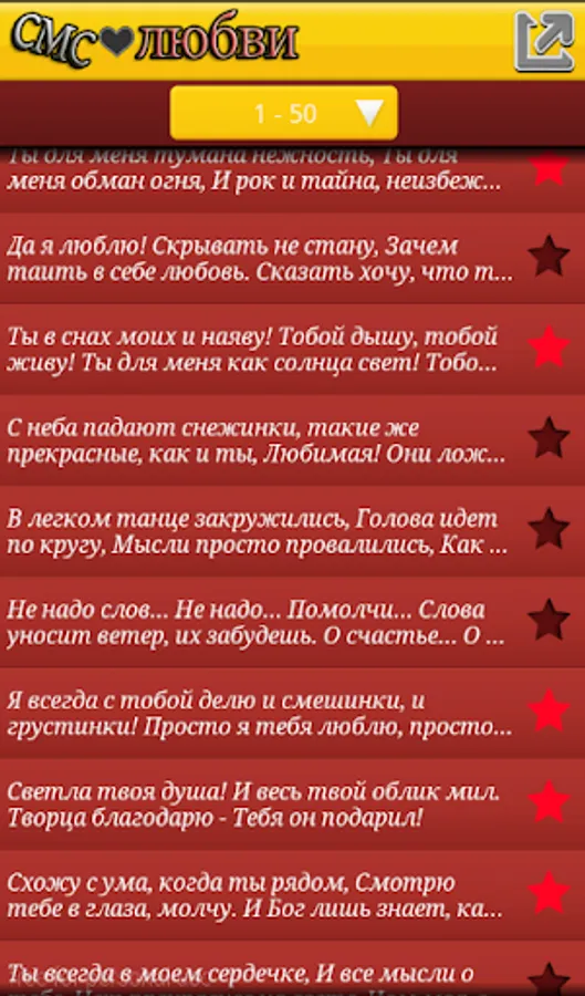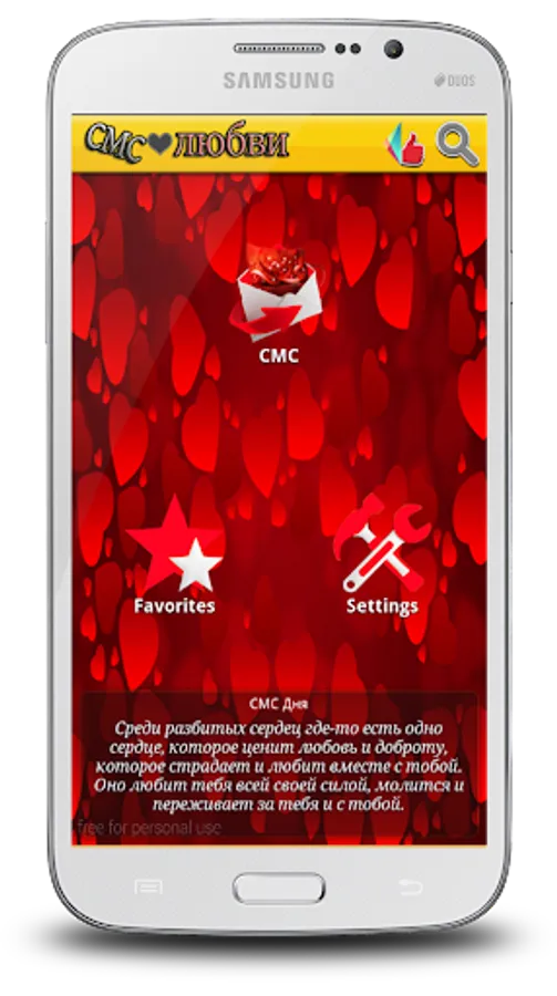 Application CMC love ♥ SMS ♥ is the best collection of sms, consisting of more than 300 messages of love, does not require access to the Internet.