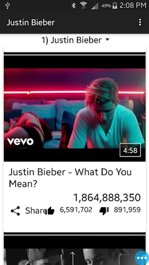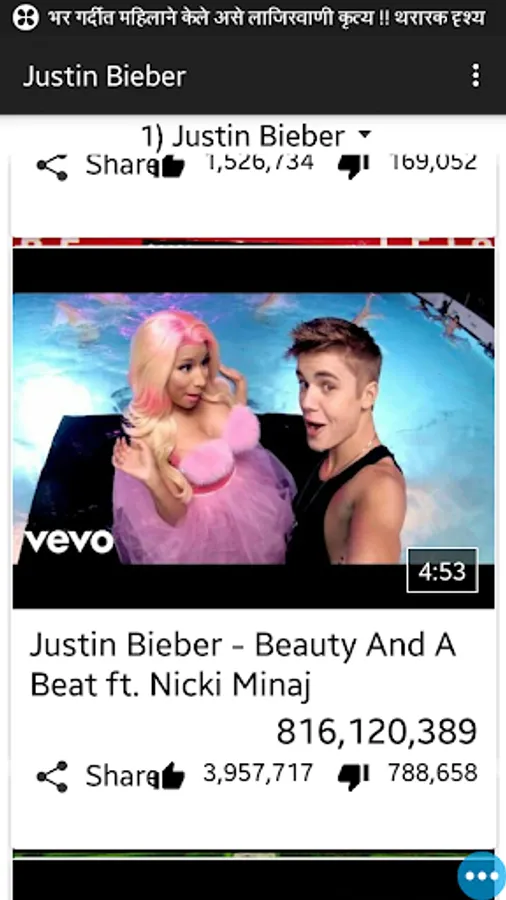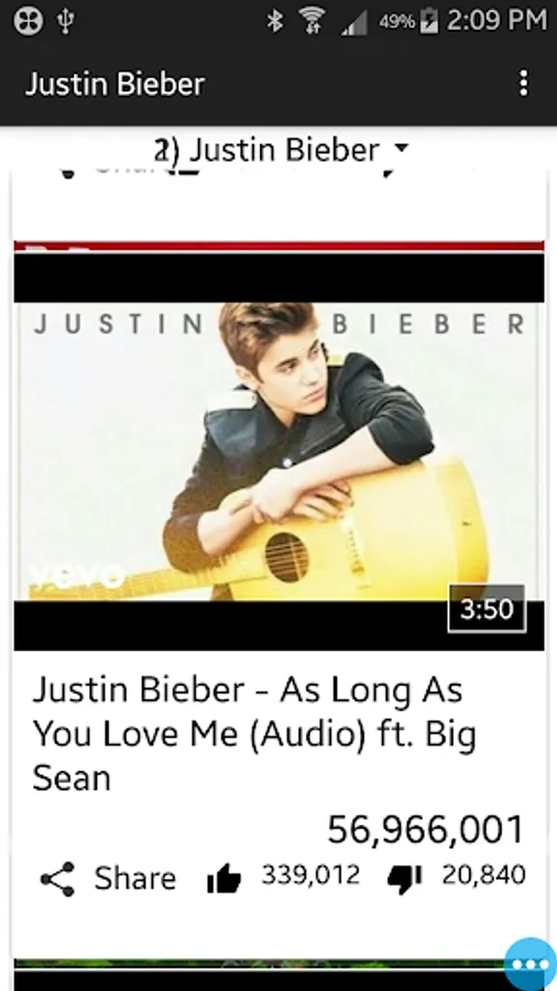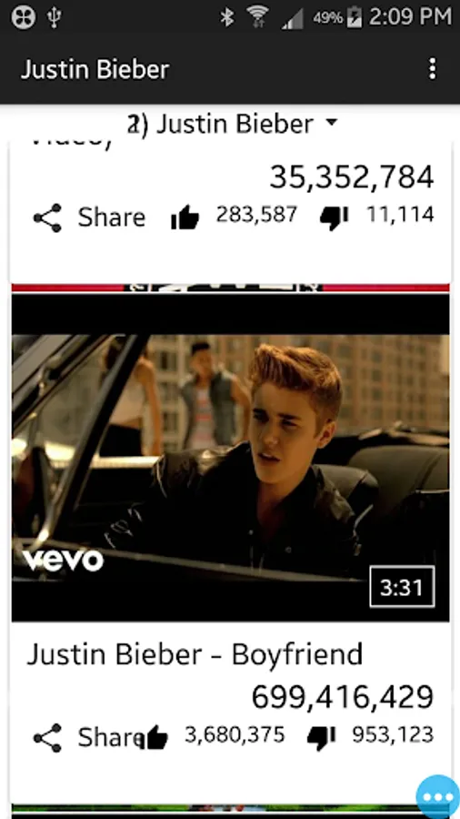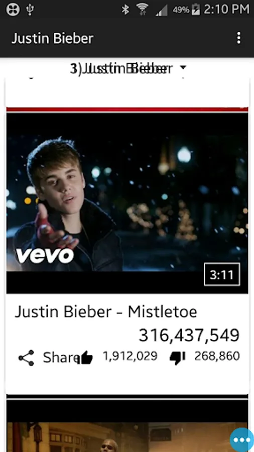In "Justin Bieber songs" app we provide 100+ videos of justin bieber.