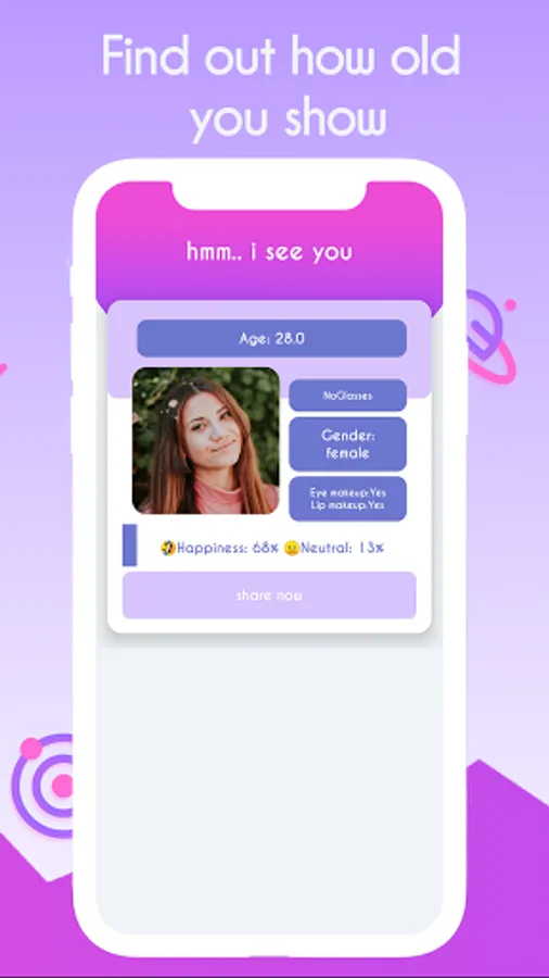 - The app uses the most advanced facial recognition technology to estimate your age.