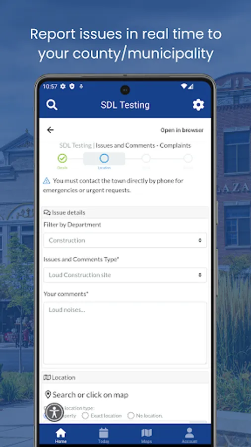 Search Properties, Permits and Complaints. Complaints are limited to town specified list of types