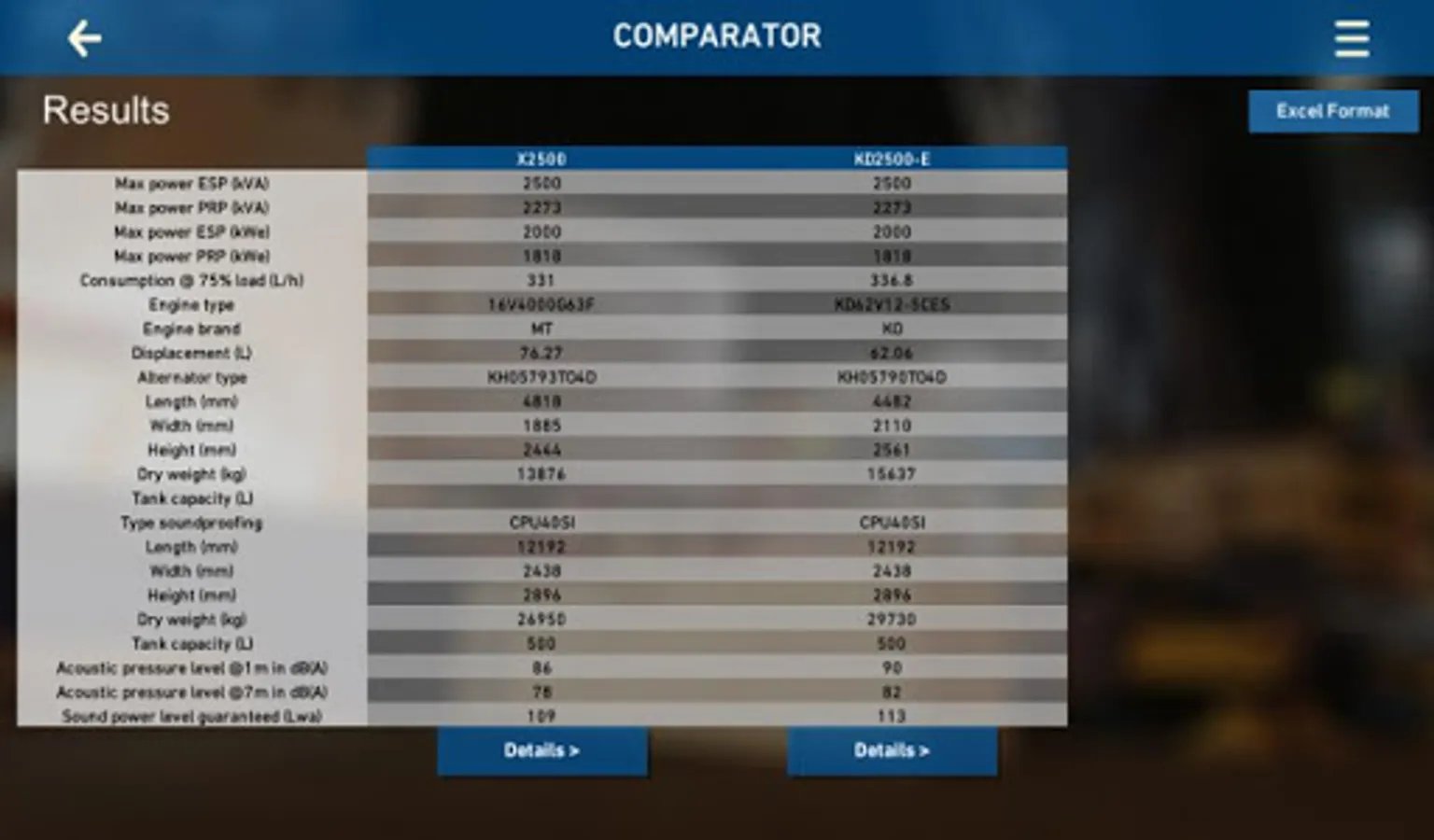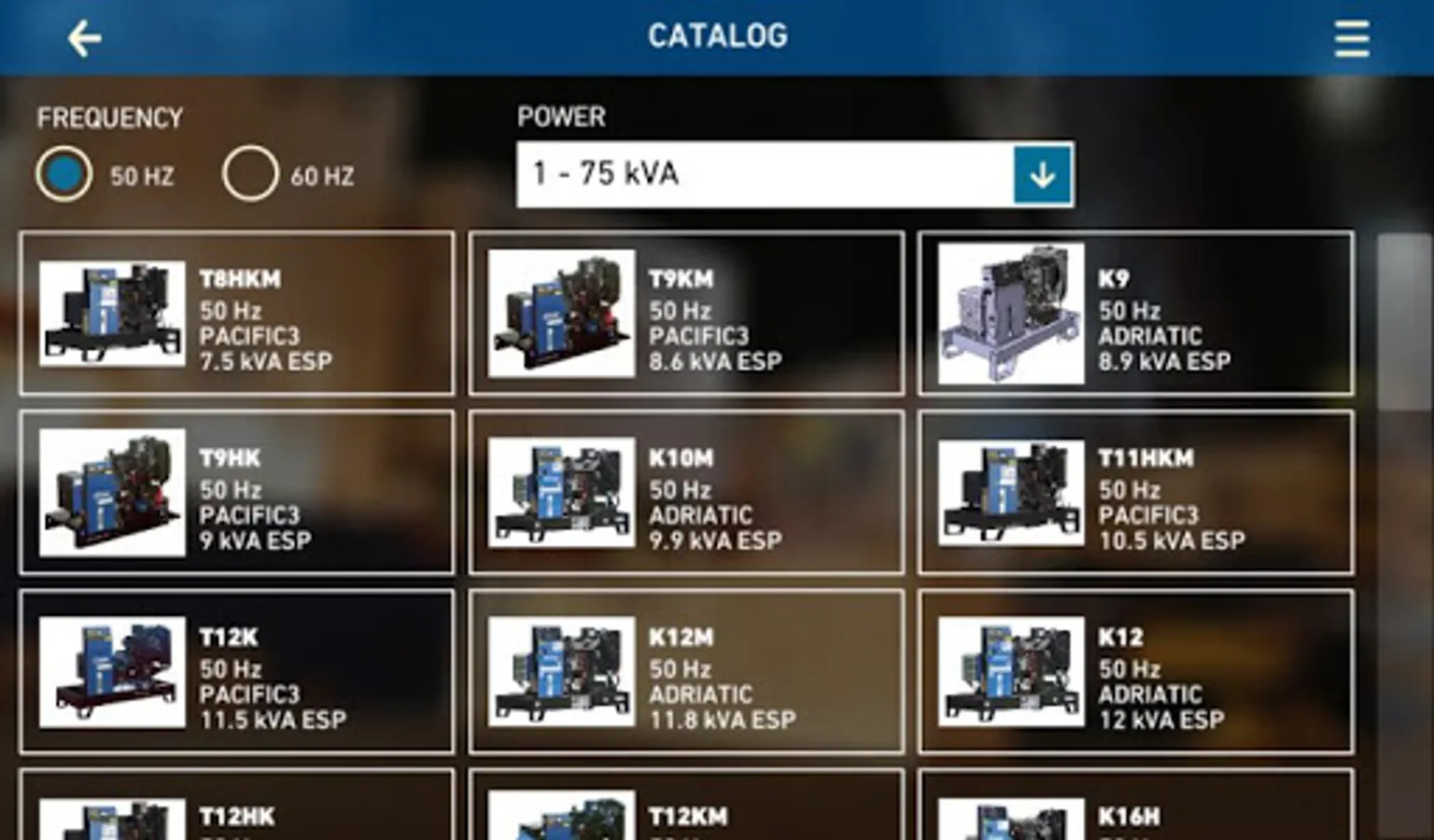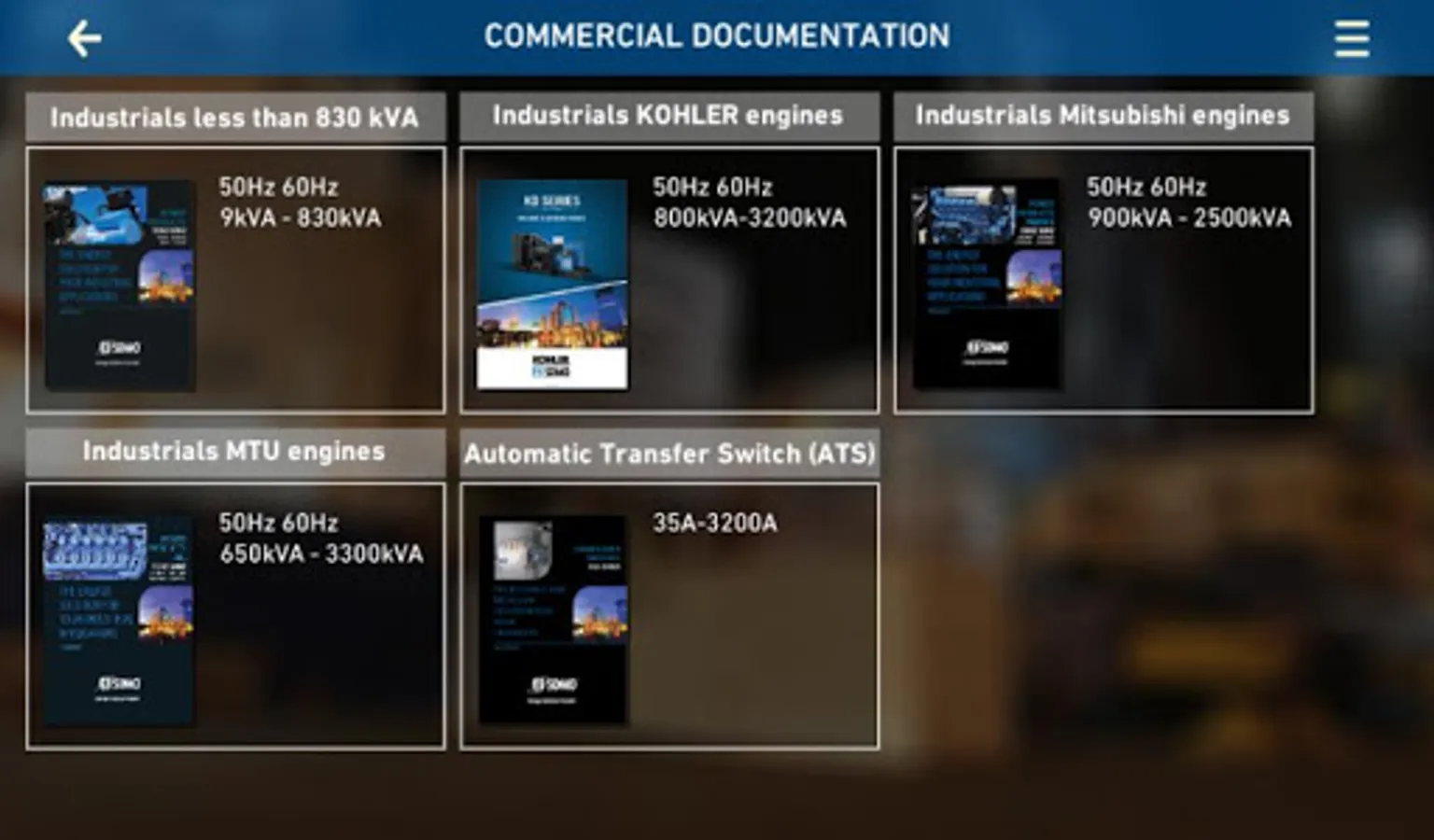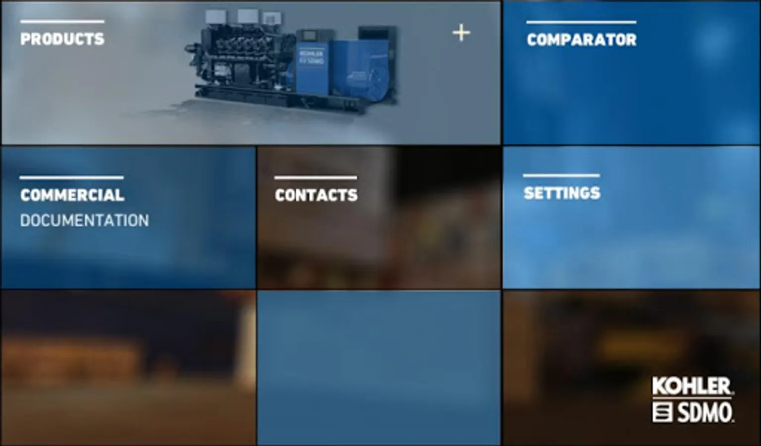 Via its application, KOHLER-SDMO puts at your disposal the information for all its industrial generators. Connected or not, you will have access to all our brochures, the datasheets and to a tool which compares generators’ technical data. You will also be able to send these information by email to anyone you choose. We offer you a “KOHLER-SDMO contact” section and our distributors’ list. Our application will evolve with time; please feel free to share your comments about it.