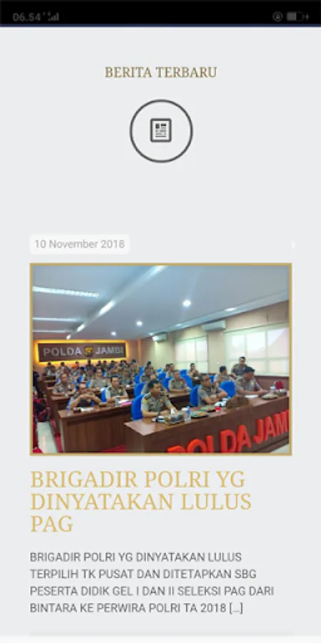 The application was built to provide information such as the requirements, schedules, professions and registration of the Indonesian National Police at Panda Jambi, as well as the latest news on educational activities and transfer of groups to the Jambi Regional Police HR Bureau.