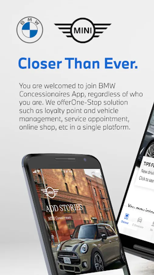 - Enjoy Everything BMW/MINI in ONE App: Manage your cars, book a service, and shopping all in one single platform