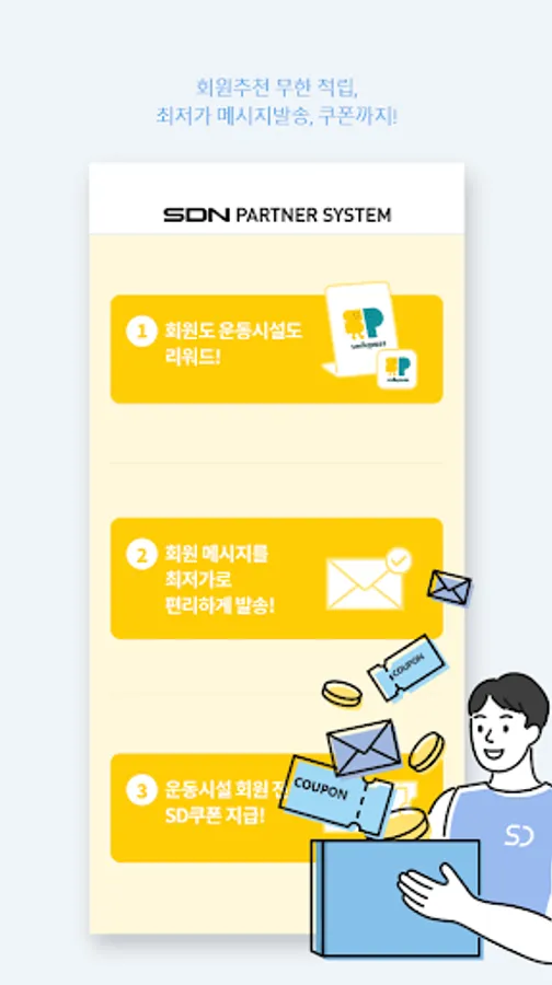 SD Networks provides a wide range of professional services free of charge, such as , a job search service optimized for sports facilities and trainers, , a sports shopping mall, and , a member management marketing tool for sports facilities.