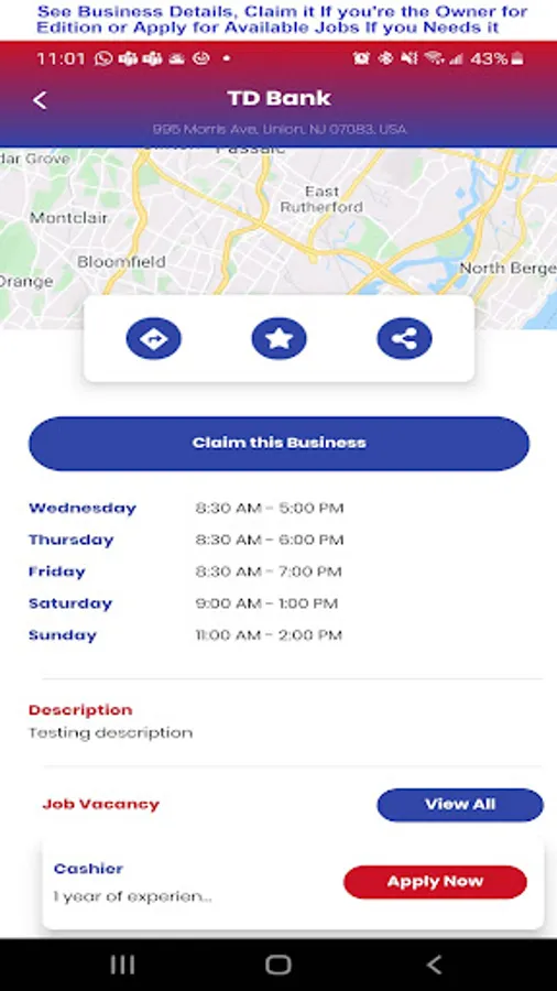 SDQ is a creative mobile application that helps you quickly find a job near you, as well as all kinds of businesses that you may be interested in, such as restaurants and bars, banks, hospitals, shopping centers, hotels, etc. It’s a unique guide based on recommendations from Google API. Those places found not only show all details about the businesses and the direction in the map but also, as a business owner, you’re going to be able to claim the business and edit other details that are not specified yet upon approval, upload pictures, menu, list of product/services and another critical element, the owner can also add job opportunities that users around will be able to apply in the app and interact with the business owner.