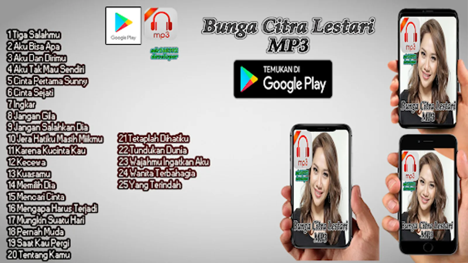 The Bunga Citra Lestari MP3 music player application has a very nice appearance and features, attractive and easy to use