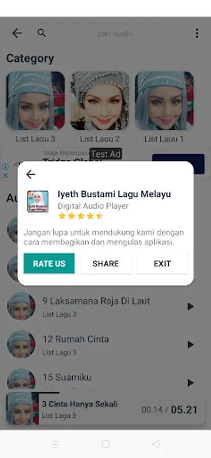 Hope you are entertained with the Iyeth Bustami Malay song music player application. Thank You.