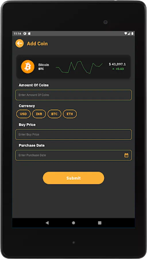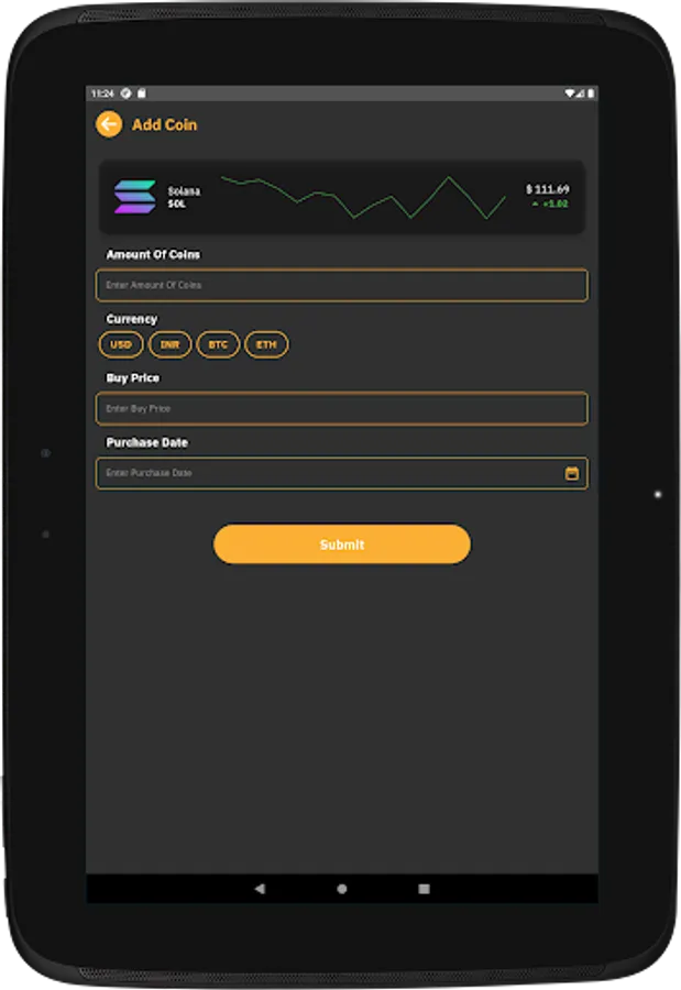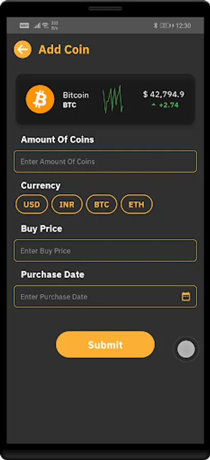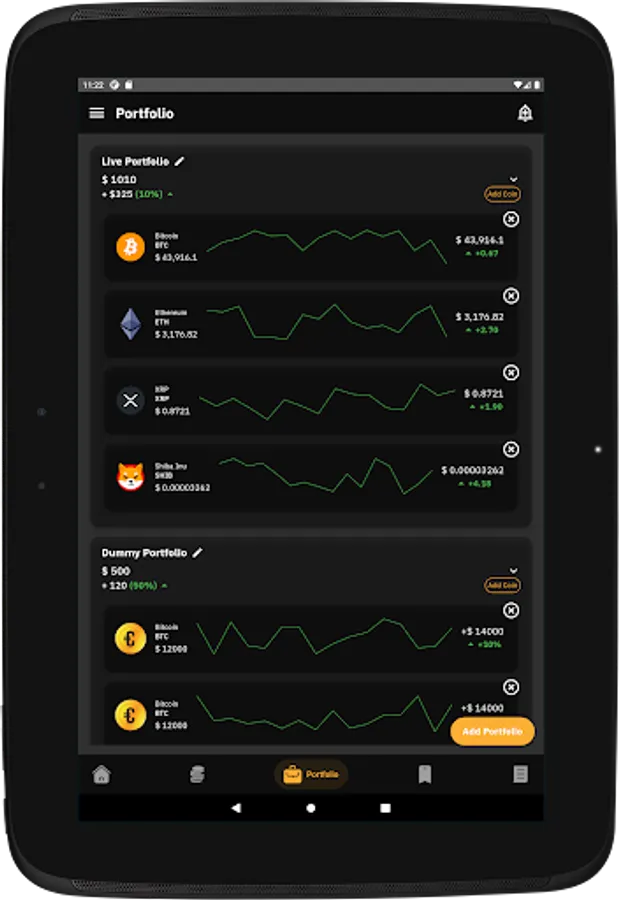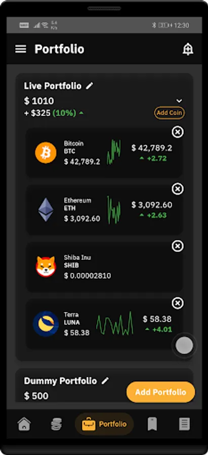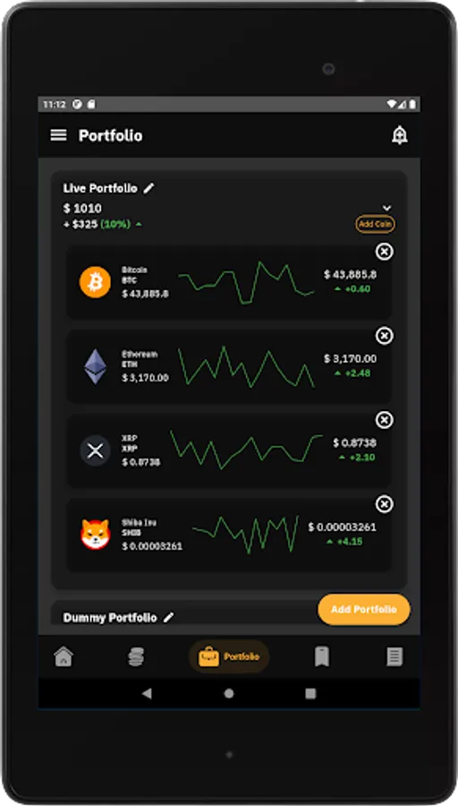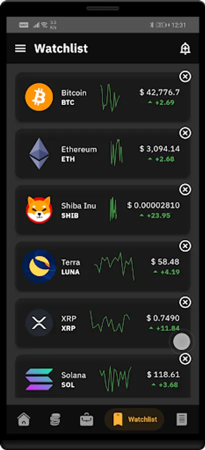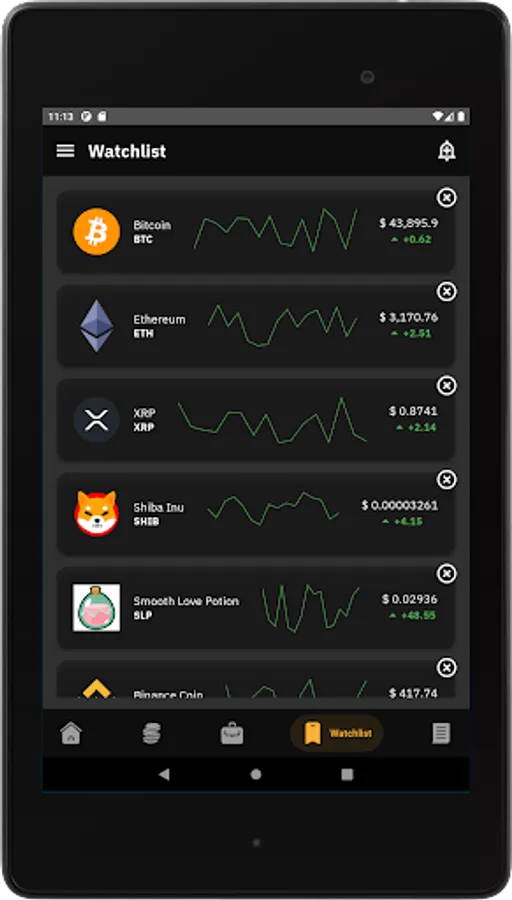 3. Allows you to create your own purchased Cryptocurrencies profile to monitor within the app