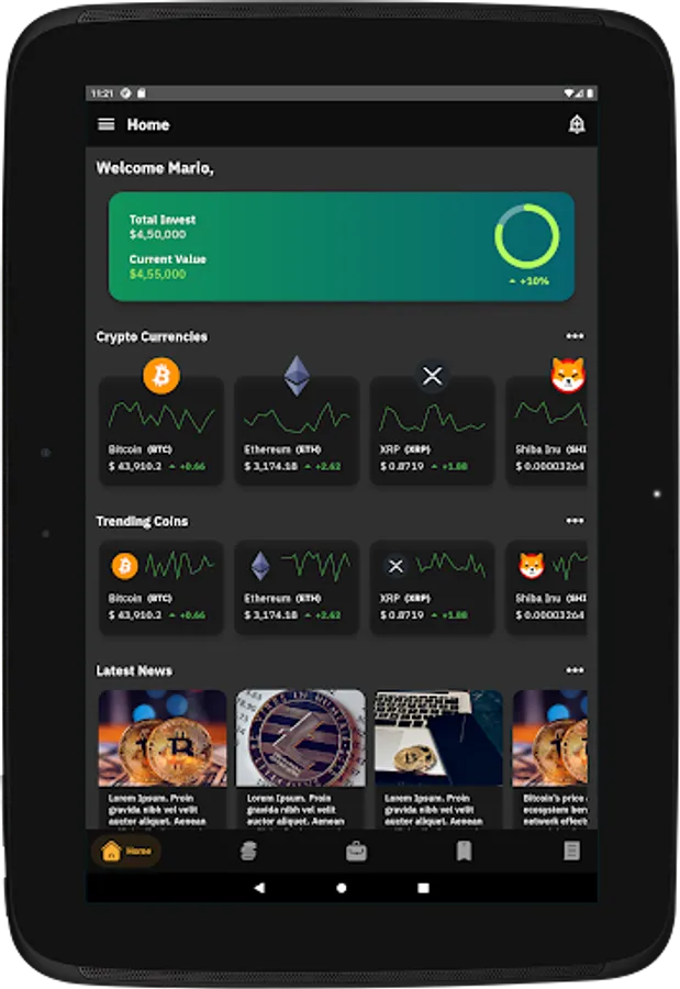 Coinpool cryptocurrency portfolio management flutter app UI kit template is a cryptocurrency-based app where you can easily track live cryptocurrency prices, charts, and coin market changes.