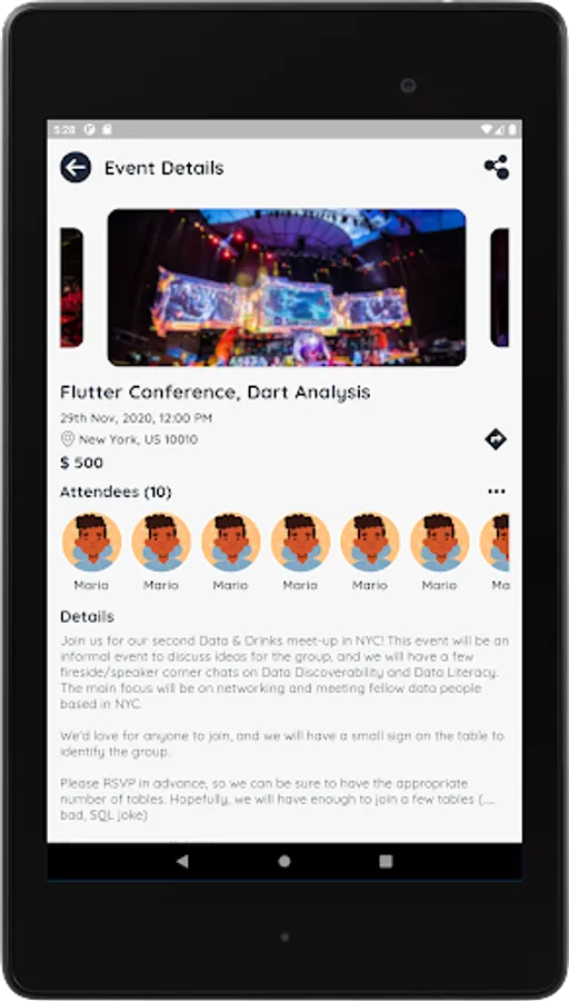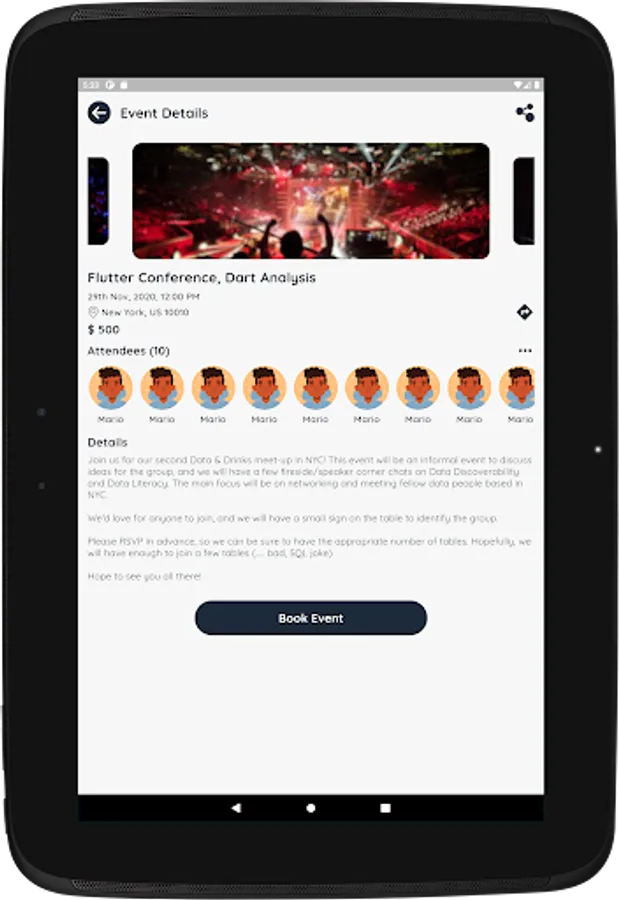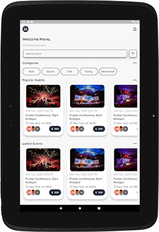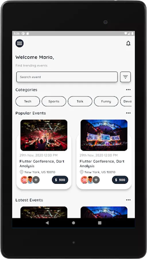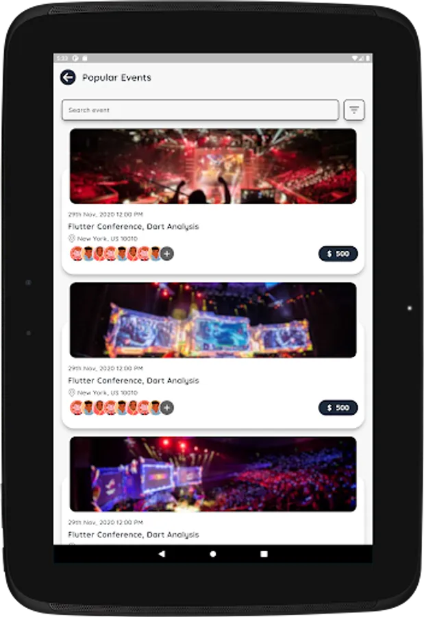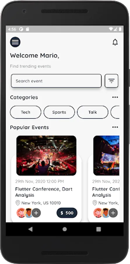 EventPro is a Flutter App UI Kit for Events booking. EventPro is nicely designed and developed using flutter, open-source mobile application development SDK created by Google for building natively compiled applications (Android and iOS) from a single codebase.