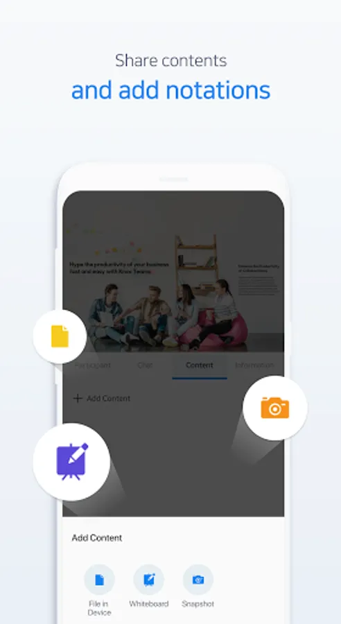 You can also share voice, video, and documents during meetings, and communicate effectively through features such as writing and chatting.