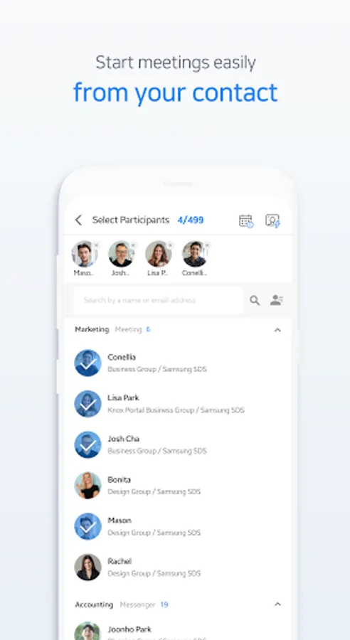 Knox Meeting is a video conferencing service that enables users to communicate and collaborate in real time anytime, anywhere through various devices such as PC and Mobile.