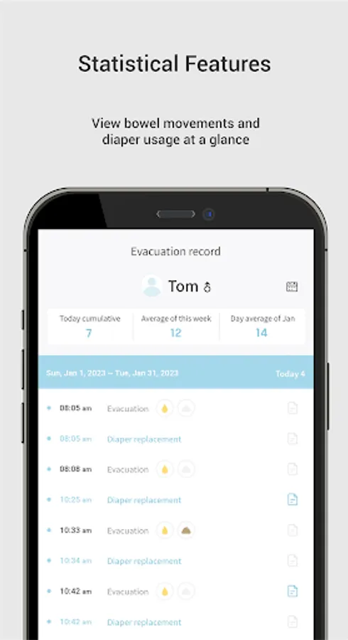 2. Statistics/Recording makes it easy and convenient to check your child's bowel health at a glance.