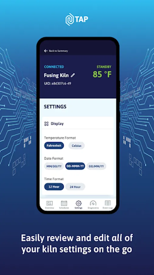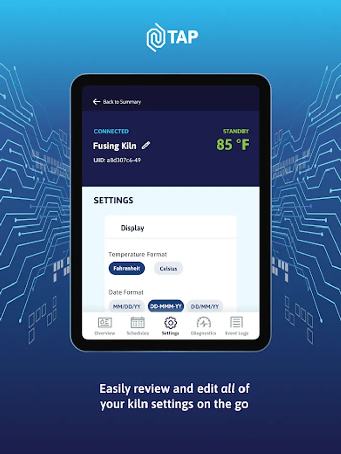 NOTE: TAP Kiln Control Mobile is designed specifically for, and can only be used in conjunction with, the TAP Kiln Controller from SDS Industries.