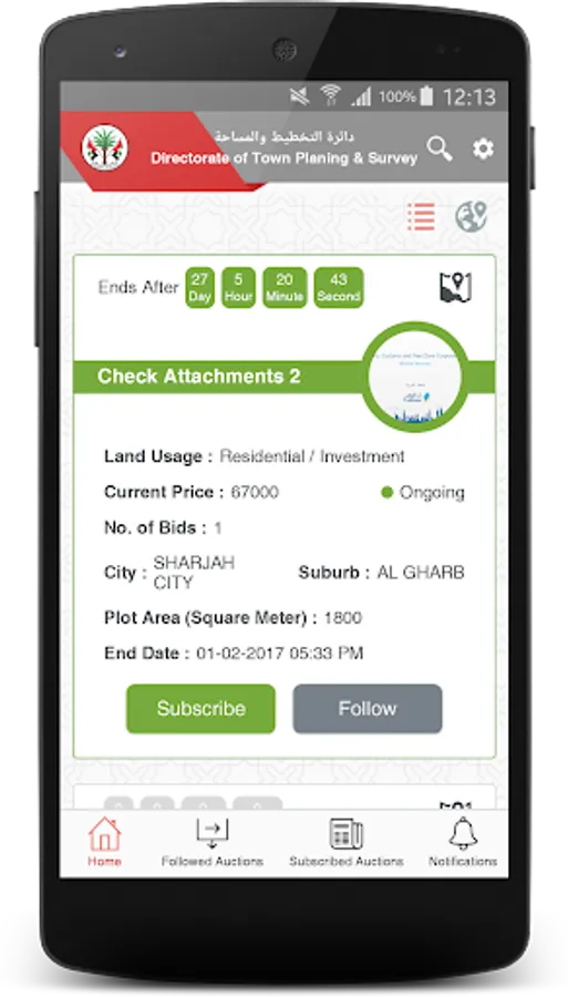 Sharjah Directorate of planning and Survey Auction System is a center for all auctions listed by SDTPS Public Services for public, SDTPS auction system provide public investors an experience to participate in live bidding for any listed auction.