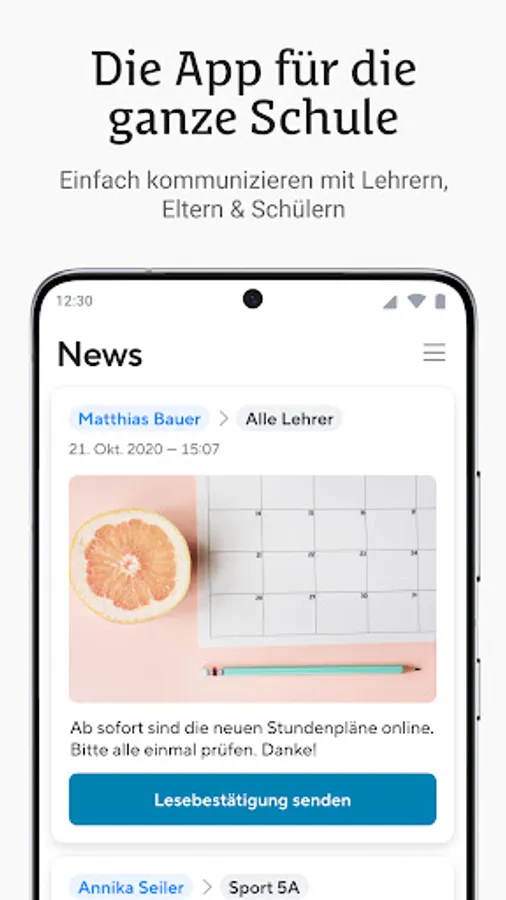 - For parents: In the future you will receive important school information such as letters to parents via the app and can send a read receipt with just one click. You will receive all the information relevant to you directly from the school on your mobile device. In this way, you can quickly and easily take part in surveys in order to be able to participate in everyday school processes such as planning a parents' evening. The same applies to apologies, short messages or voice messages, which you can now send to the teacher in a user-friendly manner via your mobile device with the OSS Messenger. The introduction of the OSS messenger also overcomes existing language barriers in everyday communication between school and parents using an integrated translation function. In addition, families with children at different schools can use the app to easily switch between the locations in the Messenger menu.