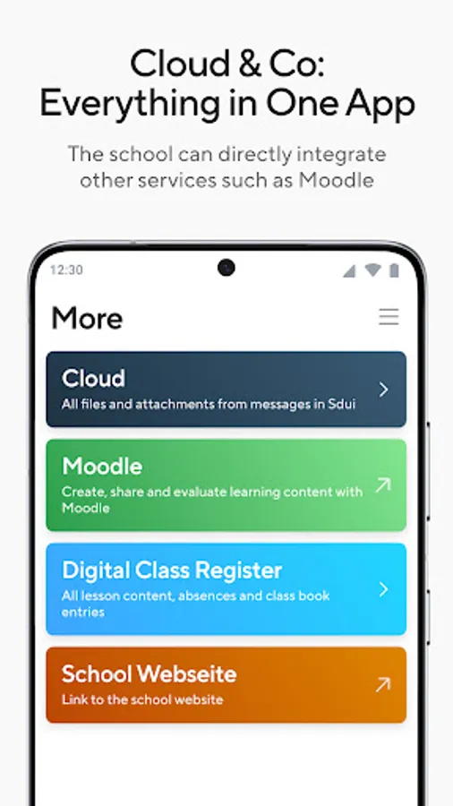 Wherever time and effort can be saved, Sdui comes into play - in other words: we simplify communication and organisation in schools and daycare centres. This is how we help make everyday life in educational organisations easier. We develop GDPR-compliant solutions that connect teachers, eductators, parents and children in order to shape the education of the future together. Features such as secure chats, school news, surveys, digital class register, sick notifications and many more are conveniently accessible from one single platform.