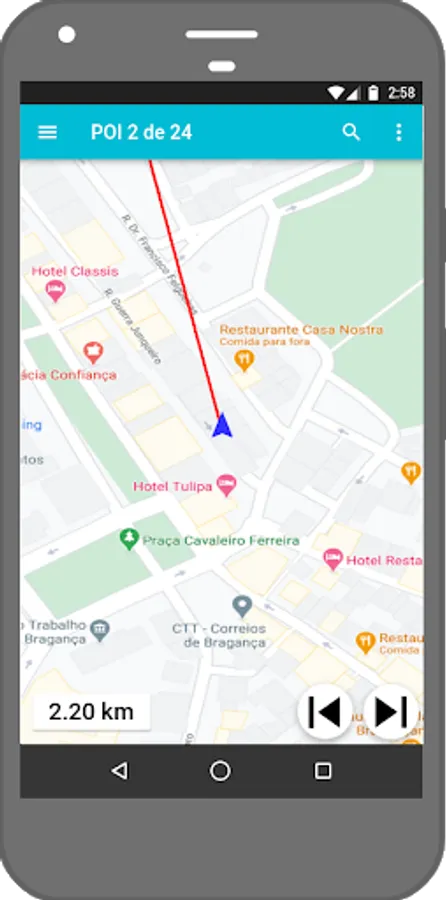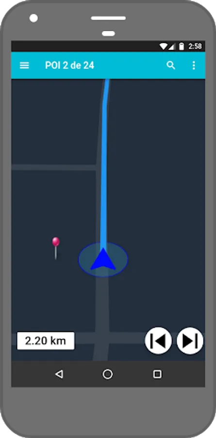 With this app you'll be able to preview the route, the POI and navigate the selected route.