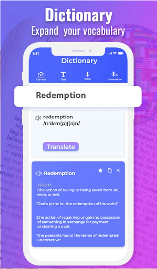 If you want to translate the text into the desired language then type the word, sentence, and phrase and press the translate button. All language translator or English to French translator app convert the word or sentence into another language that you want. Also, listen to your text or phrase just press the button text to voice language translator.