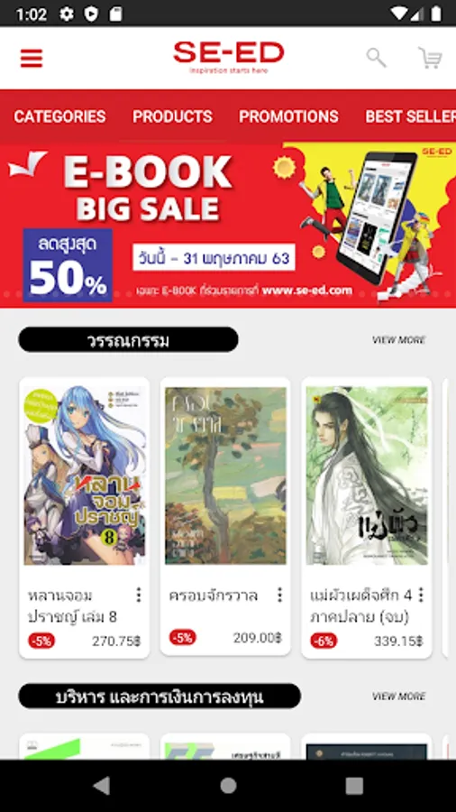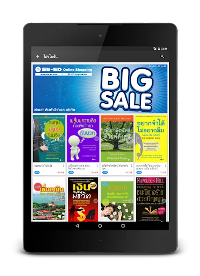SE-ED Application เป็น Online Bookstore ชั้นนำที่มีฐานข้อมูลหนังสือมากที่สุด ทั้งที่เป็นหนังสือเล่ม และ e-book สามารถค้นหาหนังสือที่ต้องการได้อย่างสะดวก รวดเร็ว ติดตามหนังสือออกใหม่ หนังสือขายดี ตรวจสอบสาขาของซีเอ็ดบุ๊คเซ็นเตอร์ที่มีจำหน่าย และสั่งซื้อได้อย่างง่ายดายเพียงไม่กี่ขั้นตอน นอกจากนั้น ยังมีสินค้าประเภท non-book ที่หลากหลาย น่าสนใจให้เลือกซื้อ