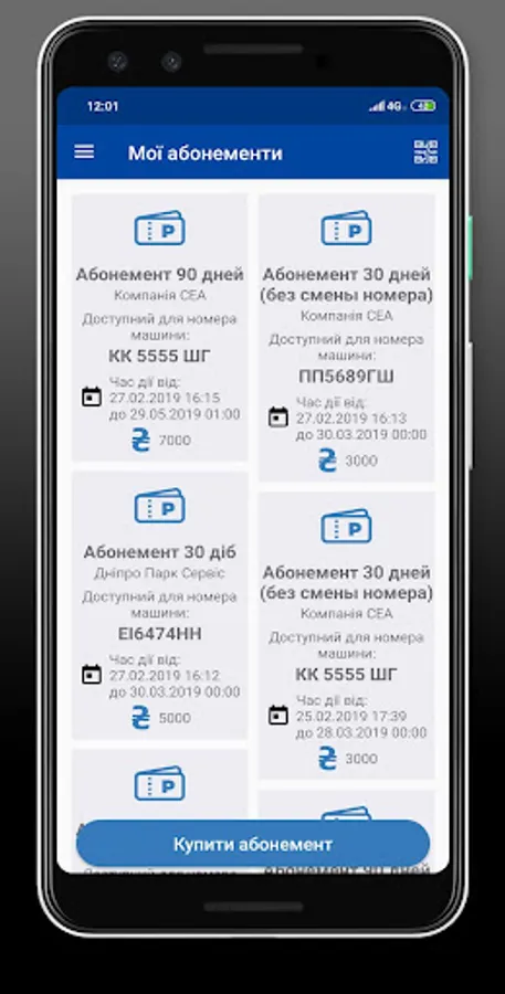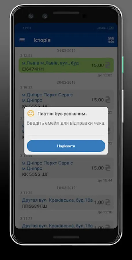 - History - history of parking payments (address, date, amount, car number, parking duration);