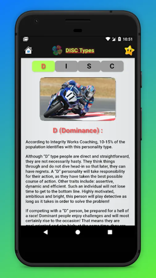 🌿 This free DISC personality test lets you determine your DISC type and personality profile quickly. Find out how the DISC factors, Dominance, Influence, Steadiness and Caution predict your behavior towards others and the everyday things you do.