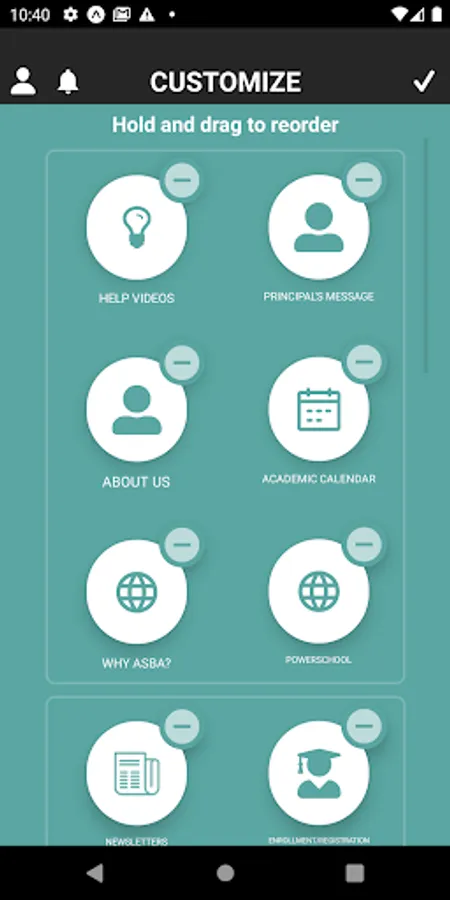 Your ASBA app is fully customizable by you: Rearrange your portals to easily access whichever features you use most. If you want to check school events frequently, you can put that portal front and center. If you never check the directory, you can turn that portal off.