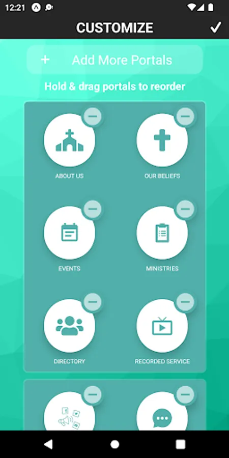 Your Brookside app is fully customizable by you: Rearrange your portals to easily access whichever features you use most. If you want to check school events frequently, you can put that portal front and center. If you never check the directory, you can turn that portal off.