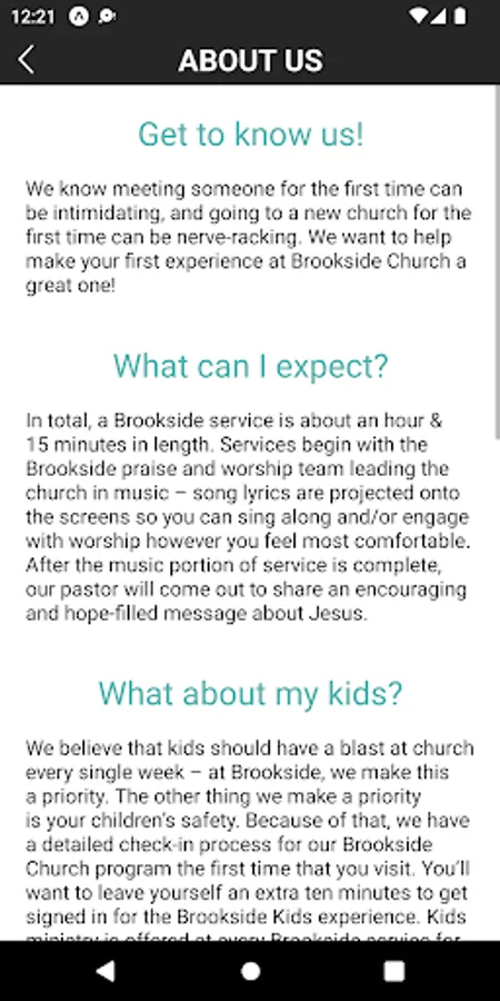This beautiful, customizable design features a clear layout of everything you could possibly want to use as a Brookside churchgoer, visitor, staff, or any other member of the Brookside community.