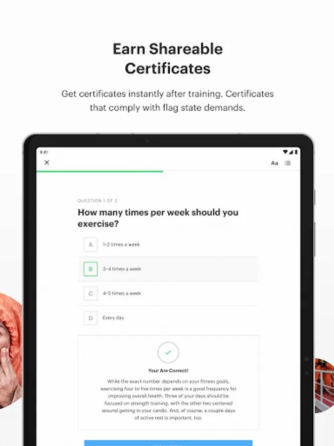 - Earn shareable Certificates: Easily share your achievements with vetting inspectors, employers, or colleagues.